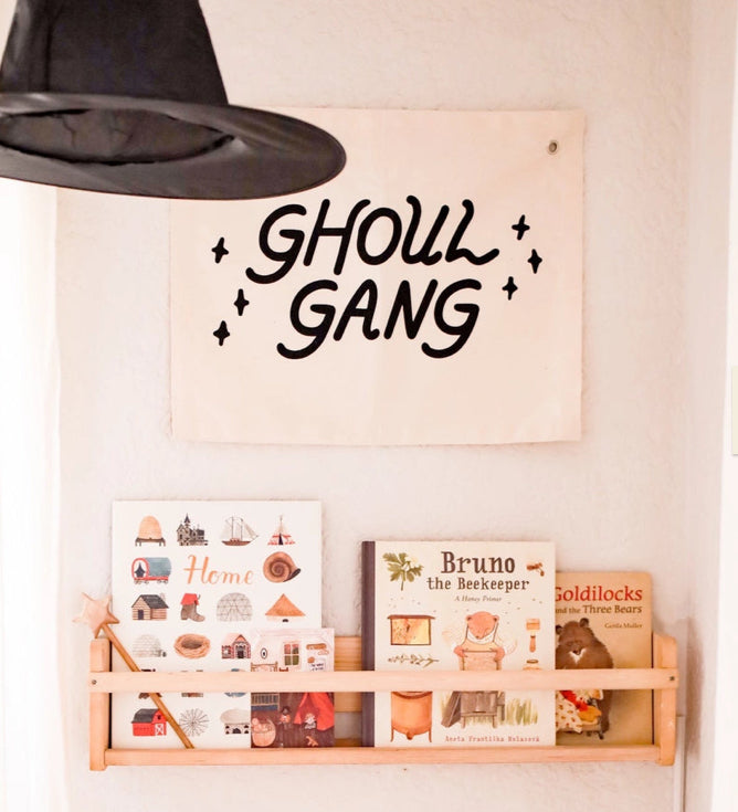 "Ghoul Gang" Canvas Banner | Halloween Wall Flag Sewn and screen printed by hand on natural canvas by Kenyan artisans. Imani Collective design.